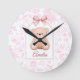 Amelia | Custom Pink Teddy Bear Nursery Design Round Clock