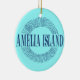 Amelia Island in blue with sun design Ceramic Ornament
