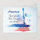 Patriotic inspirational quote postcard features America - God shed His Grace on thee, with a beautiful abstract background, the American flag and Statue of Liberty.*_