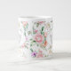A hobnail-like traditional American pageant crown graces the sides of this jumbo mug is shown in a pretty rose floral print, NO text.