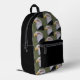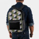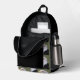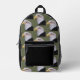 Travel with this stylish and trendy backpack that features the photo image of a white-headed American Bald Eagle head on a green background and printed in a repeating pattern on front side only. Sides and zippered pouch are black.