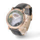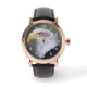 Men's stylish wrist watch with white numerals that features the photo image of a stately Bald Eagle with hooked beak. Select your watch from several styles.