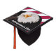 Graduate with pride in your personalized American Bald Eagle mortar board topper. The majestic bald eagle is backed by the bold red and white stripes of the United States flag, perfect for a graduating student entering the military or who just loves the USA!