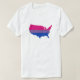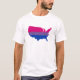 Basic T-Shirt with bisexuality rainbow stripes of pink, purple and blue on map of The USA (United States of America), rainbow pride design, by pinkbrickroad