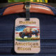 American Buffalo Bison in the bronze colour .Eating grass in a field with a American flag behind him. text declaring "American Buffalo Bison, Let this entertaining humourous fun design do the talking for you.