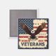This patriotic magnet serves as a compact yet powerful tribute, featuring the iconic bald eagle and American flag in a vintage, weathered style. Despite its smaller size, the design retains its striking detail, from the intricate feathers of the eagle to the "grunge" texture that gives it a historic, timeless feel.
