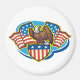 Show your patriotism with this stately eagle. The design is of an eagle with American flags background.