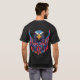 The "American Eagle" t-shirt design features a powerful and majestic eagle in mid-flight, wings spread wide, symbolizing freedom and strength. The eagle is intricately detailed, capturing its fierce gaze and sharp talons. Behind the eagle, the American flag waves proudly, with its stars and stripes adding a patriotic touch. The combination of the eagle and the flag creates a bold and dynamic visual, perfect for expressing national pride and a love for American heritage.