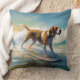 American Engligh Foxhound Beach Surfing Painting Throw Pillow
