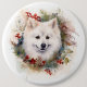 American Eskimo Christmas Wreath Festive Pup 6 Inch Round Button