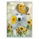 Beautiful American Eskimo Dog wearing western style hat and holds single yellow daisy in his mouth against a backdrop of colour and stars is available on All Ocasion Dog Lover Greeting Cards.....just one of many Friskybizpet Designs featuring your favourite pet.