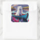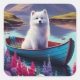 American Eskimo Dog on Paddle: A Scenic Adventure Square Sticker