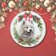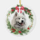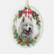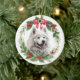 American Eskimo Dog Red Bow Holly Wreath Ceramic Ornament