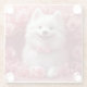 American Eskimo with Roses - Valentine's Day Glass Coaster