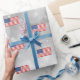 Display your love for America for Christmas, July 4th, or any other occasion with this patriotic USA wrapping paper featuring an American flag!