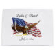 A waving US flag and a flying bald eagle. Add names and date of your wedding or event.
