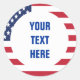 American Flag Border on round sticker - add your custom text in the centre. Great for election campaign or voting slogan, or any statement you want to make with United States symbol.