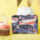 This patriotic wrapping paper is covered with a collage of American flags. The festive red, white, and blue will be the hit of any patriotic celebration.