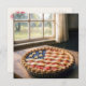 A homemade strawberry pie with an American-style crust, perfectly placed on a rustic wooden table by the farmhouse window, pays tribute to the spirit of patriotism/