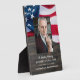 USA American Flag Memorial Plaque. This military memorial plaque features a United Staes of America Flag on a dark wood background. "In Loving Memory" Personalize this military plaque with your loved ones photo, name & dates, and sentiment. This American Flag photo plaque is a treasured keepsake, military funeral tabletop sign, and veteran memorial service or celebration of life. In Loving Memory Military Memorial American Flag Plaque. COPYRIGHT © 2020 Judy Burrows, Black Dog Art - All Rights Reserved. American Flag Custom Photo Patriotic Memorial plaque