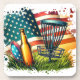 An ai illustration of a disc golf basket, a bottle of beer and an American flag.