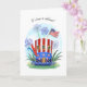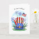 Red, white and blue ring true for this decorative patriotic fairytale home situated festively next to a puff of Lilies of the Nile. Original illustration by Noël Snow.