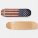 USA American Flag skateboard in a distressed worn grunge design on wood . This united states of america flag skateboard design with stars and stripes in red white and blue is perfect for military, graduation gifts. Personalize this american flag skateboard with name.