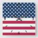 Square Wall Clock, wall art decoration and home furnishing decor accessory printed with American Flag Stars And Stripes red white and blue artwork design by TheFabricSeal at Zazzle.com #ZazzleMade