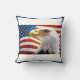 The American flag throw pillow which is reversible with an American bald eagle on the back. Available in different sizes and materials.