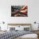 Patriotic American flag in waving fabric design with canvas material texture effect. This USA flag design is perfect for you to enjoy this canvas print on 4th of July, Memorial Day, Veterans Day, Independence Day Celebrations or to show you are proud to be American.