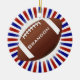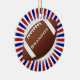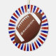 American Football Design Ornament on a patriotic Red, White and Blue Bursturst background and customizable personalization on front and back.