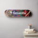 Unicorn Gold Personalized Skateboard CLICK PERSONALIZE TEMPLATE OPTION AND ENTER NAME Cool skateboard designed with red roses and a pretty white unicorn face on left horizontal side. She has golden hair , flowers and personalized with name in gold calligraphy script lettering. Makes a great gift idea for a unicorn lover.