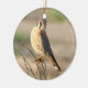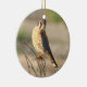 This small falcon is all decked out in his bright colours. The male American Kestral has black stripes on the sides of his face, blue-grey wings, and a rusty-coloured back. This falcon will look great on your Christmas tree or as a decoration all year long.