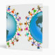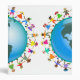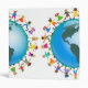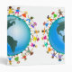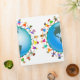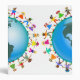 Cute cartoon illustration of a group of happy and diverse boys and girls holding hands around a globe with a map of North and South America. Image available on various gifts and products. Customize if you prefer and change the background colour or add some text.