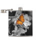 American Lady Butterfly On Apple Blossom, Drink Flask. Digital Art. Black & White photo with highlighted butterfly, Nice design for many different occasions.