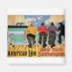 Vintage ocean liner poster for the American Line services from New York to Southampton, showing fishermen on a pier watching a liner sail by.
