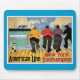 Vintage ocean liner poster for the American Line services from New York to Southampton, showing fishermen on a pier watching a liner sail by.