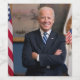 The photograph captures a moment in time before president elect Joe Biden appointed office of Vice President of the United States. Sunlight streams through a window, casting a warm glow on the figure of an Biden standing confidently in the centre of the frame. His arms are crossed, a gesture that suggests both authority and a hint of casual ease. --- Mr. Biden is dressed impeccably in a dark suit, the crisp fabric contrasting sharply with the clean lines of his white shirt. A blue and white striped tie adds a touch of personality to the ensemble. --- A glimpse of patriotism is evident in the background. An American flag stands proudly on a pole to the man's right, its vibrant colours a subtle counterpoint to the cool blue of the wall behind him. A closer look reveals a painting hanging on the wall, adding a touch of personal flair to the professional atmosphere. --- Soon to be Vice President Biden is the focal point of the image. His short white hair frames a kind face, etched with the lines of a life well-lived. A warm smile plays on his lips, conveying a sense of confidence, wisdom, and perhaps a hint of amusement.