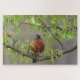 American Robin Perched on Branch w/Spring Blooms Jigsaw Puzzle