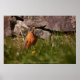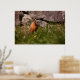 A photograph of a robin having a look whilst it is walking in the grass. There is a stone wall behind it. Image Copyright ©2021 Kimberly J Tilley.