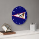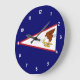 The flag of American Samoa is a flag consisting of a red-edged white triangle pointing towards the hoist charged with a bald eagle clutching a war club and fly-whisk, with dark blue upper and lower triangles. Adopted in April 1960 to replace the "Stars and Stripes" as the official flag of the territory, it has been the flag of the Territory of American Samoa since that year. The colours used epitomize the traditional colours of the United States and Samoa.