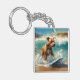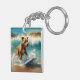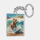 American Staffordshire Beach Surfing Painting Keychain