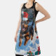 A heartwarming holiday illustration featuring a cheerful dog playing in the snow, wearing a Santa hat and surrounded by colourful gift boxes. In the background, children build a snowman beside a snow-covered Christmas tree, creating a joyful winter wonderland. Perfect for spreading holiday cheer and capturing the magic of Christmas.