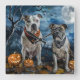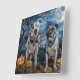 Unleash the spooky spirit with this eerie Halloween design featuring a pack of dogs under a dark, moonlit sky, surrounded by flying bats and glowing pumpkins. Perfect for those who love a touch of frightful fun with their furry friends!