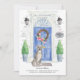 Announce your new address with our stylish announcement featuring a American Staffordshire terrier, blue front door, welcome mat, slate sign, topiaries and a floral wreath set on a grey brick background.