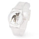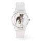 The watch features a tri-colour black, white and brown American Staffordshire Terrier puppy dog highlighted against a crisp white background.