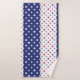 A vibrant beach towel featuring alternating red, white and blue stars.