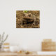 A grumpy looking American Toad (Bufo americanus) is looking at you from this poster. This small amphibian is brown with black, gold olive green and orange coloration. His warts distinguish him from his frog neighbours. Although hatched in the water of ponds, rivers, lakes or streams, the tadpoles soon move to land where the toads live their adult lives. His startling call is a long screech. He looks quite fierce but is actually a gentle little guy who eat lots of garden pests including insects and slugs.