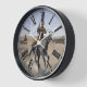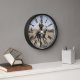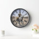 The size of the clock is dramatic and the abstract alcohol ink design is soothing and intricate at the same time. I chose the black frame that adds pop to the blue and gold design. The gold printing would be better in a slightly darker or larger font. I love it and I’m looking for just the right place in ny new apartment. I would recommend this clock for a personal gift or a present. I feel that the quality is excellent for the money! I’m a bit of a clock nut so I’m pretty particular about my purchases. The clock is larger in diameter than many if the clocks I have, so it stands out very well. I think a slightly darker printing color and a moderately larger size would best suit a professional decor or add more impact in a work place item.