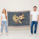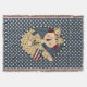 Nothing says Americana folk art like and this vintage looking room accent throw blanket, with our version of Annie holding a flag is the perfect touch for an early American accent to any room. A blue polka dot background adds a whimsical modern touch to this classic folk art theme. Makes a great gift idea.